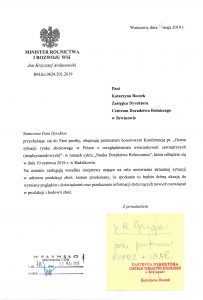 Minister podkreślił w przesłanym uzasadnieniu objęcia patronatem honorowym ww. konferencji, że na uznanie zasługują wszelkie inicjatywy mające na celu omówienie aktualnej sytuacji w sektorze produkcji zbóż. Zaznaczył też, że spotkanie będzie dobrą okazją do wymiany poglądów i doświadczeń oraz przekazania informacji dotyczących nowych rozwiązań w produkcji i hodowli zbóż.